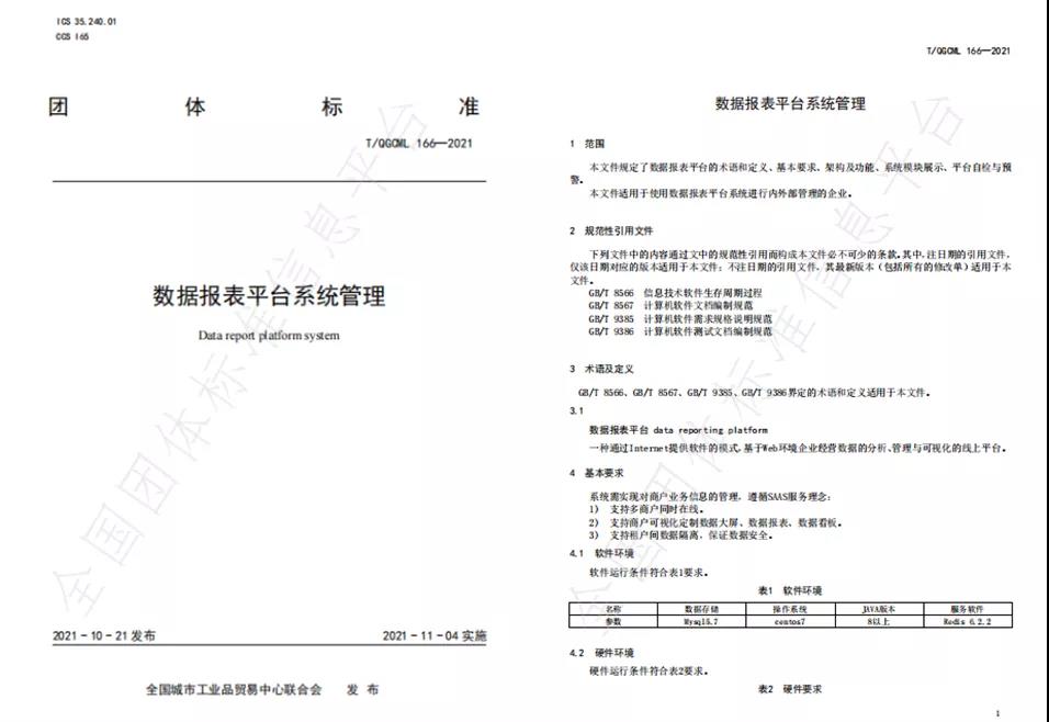 《數據報表平台系統管理》團體标準規定道現了數據報表平台基本要求、架構及功能(néng)、系統模塊員校展示、平台自檢與預警。該團體标準的正式發(fā)布,有利于規範大數據領域數據報媽門表平台的各項指标和流程。