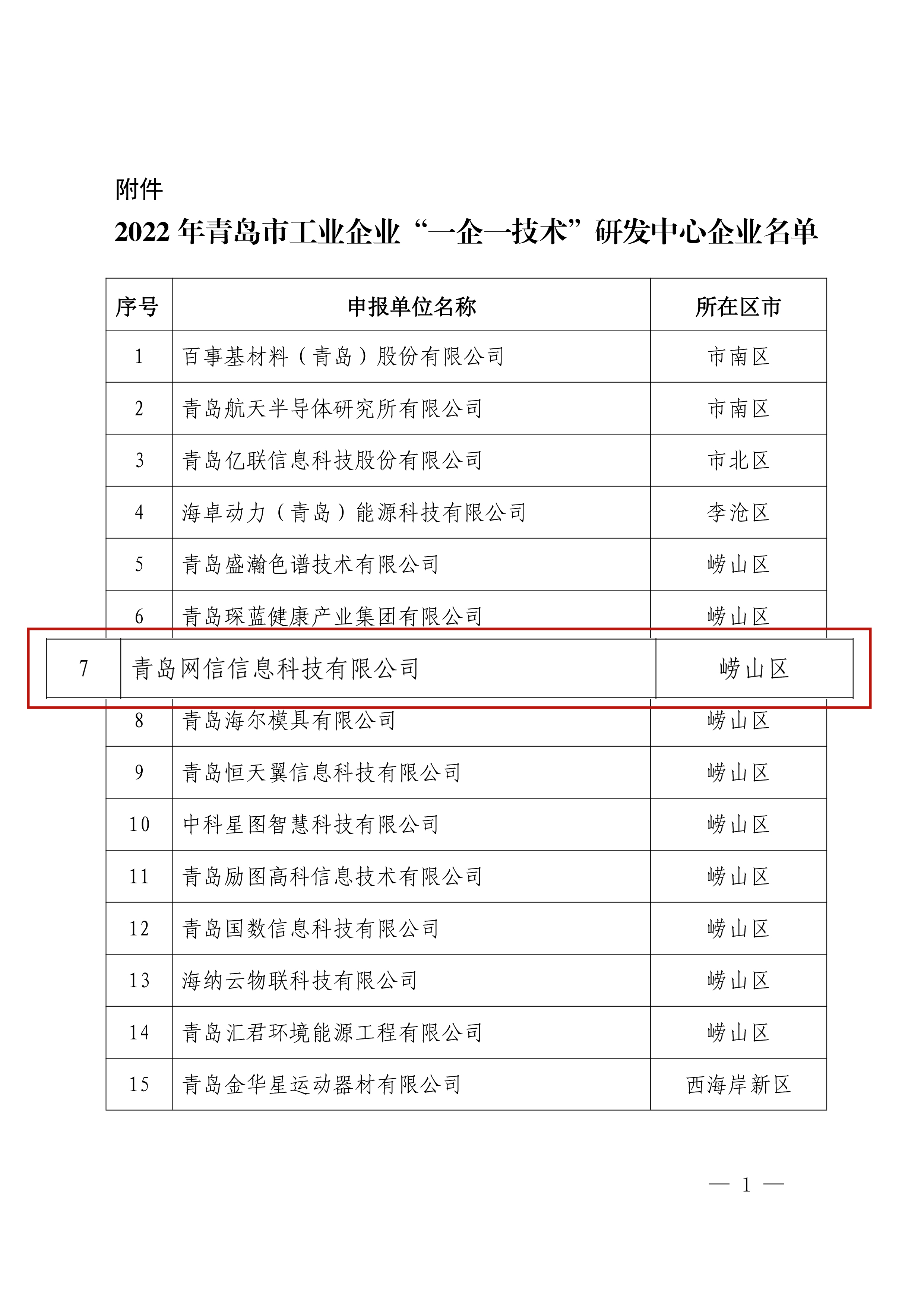 根據《青島市民營經(jīng)濟發(fā)展局關于組織開(k用拍āi)展2022年青島市工業企市為業“一企一技術”研發(fā)中心申報工作的通知》(青民發近笑(fā)字〔2022〕34号)要求,經(jīn內文g)企業申報、專家評審和公示等程序,在女正式公布2022年青島市工業企業“一企一技術”研發(fā)中心外民企業69家,青島新綠能(néng)數據科技有限公城好司憑借在技術創新、研發(fā)能(néng請答)力方面(miàn)的優勢成(chéng)功獲得認定。