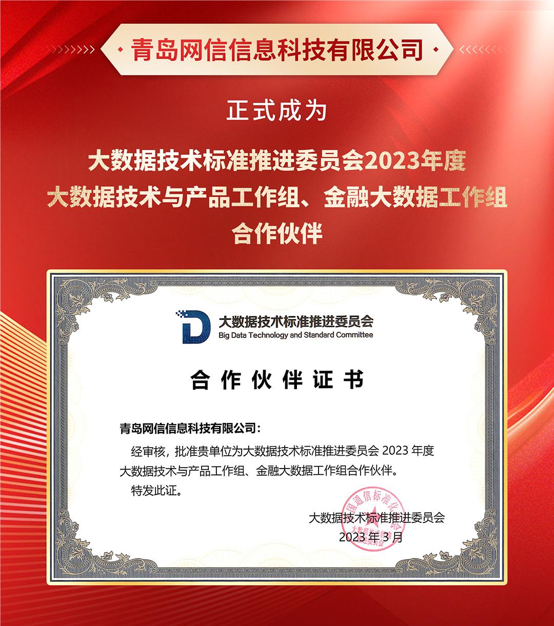 近日,網信科技正式成(chéng)爲大數據技術标準推進(jìn)委員會(hu時船ì)2023年度大數據技術與産品工作組、金融大數據工作組合作業個夥伴。日後(hòu),網信科技將(jiāng)圍繞大數據技術數據産品管理、金都得融數據等方向(xiàng)深度參與相關标準化研制工作頻學,攜手中國(guó)通信标準化協會(huì)、中國(guó)信通區兵院及行業各界共同推進(jìn)大數據标準研制與核心技術發(fā)展務熱。